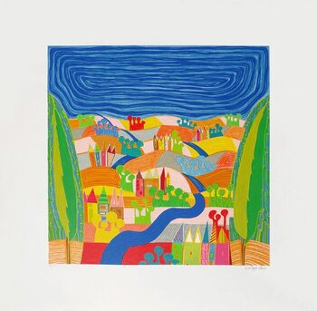 DALL'OLLIO Luca – Serigrafia – Carta Fabriano – La serigrafia contemporanea di Luca Dall'Ollio su carta Fabriano offre una nuova interpretazione dei paesaggi con colori vivaci e forme espressive.