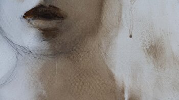 Il dubbio e l'incertezza sono alcune sfumature dell'animo, che caratterizza il personaggio fantastico qui rappresentato. Ho usato grafite e colori ad olio molto liquidi, per rendere eterea ed evanescente la figura dipinta. La doratura racchiude e impreziosisce certi piccoli dettagli.