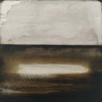 Questo dipinto, ad olio e cera su tela, gioca sul punto di vista e la linea di orizzonte. Si materializza un'ombra, un miraggio sotto l' orizzonte, una linea di luce che si espande a macchia d'olio nell'acqua scura.