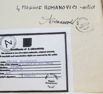 Maggie Romanovici, ex allieva di una scuola d'arte, utilizza principalmente tecniche come olio, acrilico, acquerello e inchiostro. Inizialmente esperta di arte figurativa, in seguito si è dedicata all'astrazione lirica. Armonizza senza sforzo colore, forma e consistenza con pennellate a mano libera. Le sue opere vivide trasudano una gioia e una liberazione profonde, riflettendo il suo impegno profondamente intimo con il processo di creazione artistica.