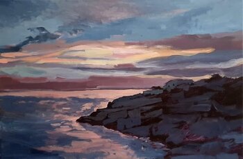 In quest'opera ho catturato il momento magico in cui il mare abbraccia il cielo al tramonto. Utilizzando la tecnica dell'acrilico, ho voluto trasmettere la delicatezza e la nostalgia dei colori impressionisti che danzano sulle onde. Ogni pennellata esprime la serenità e la potenza di questa natura selvaggia, portando un'energia rilassante e vibrante nella vostra casa.