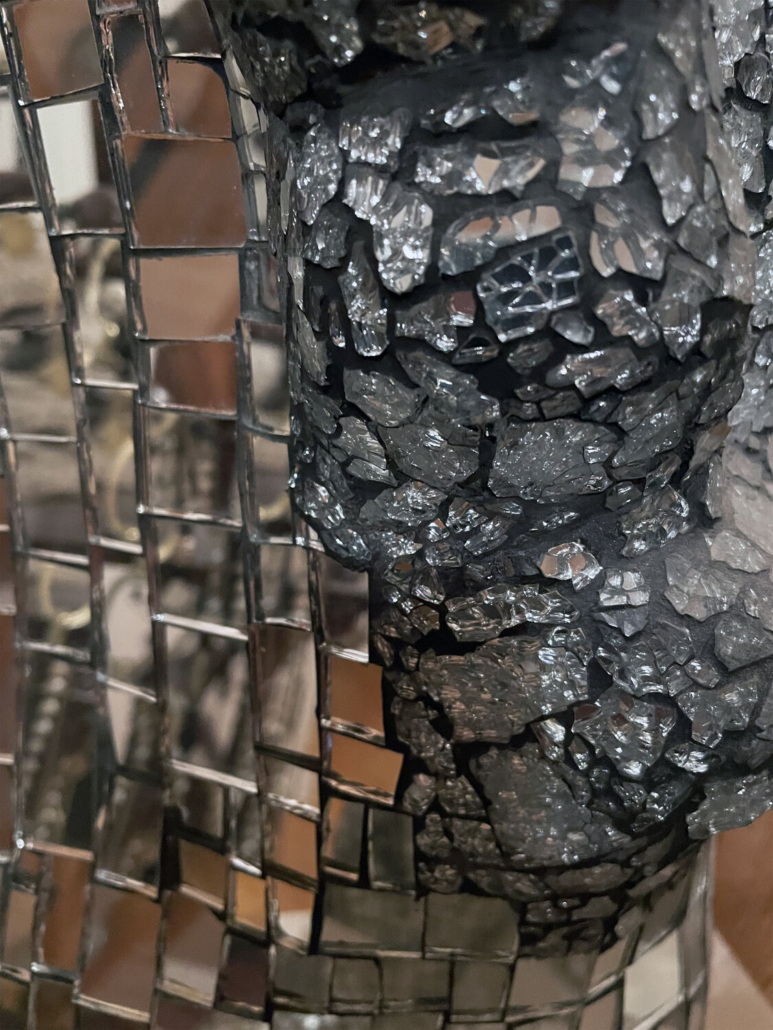 L'artista Manuella Muerner Marioni crea e modella a mano le sue sculture. Dopo il disegno, l'artista modella a mano la scultura in argilla. Per dare stabilità alla scultura, viene colata con cemento. Dopo che il cemento si è asciugato, la scultura viene levigata e ricoperta con pezzi di specchio appositamente tagliati. Gli specchi sono tagliati con fresa diamantata e incollati alla scultura. In questo modo, ogni lastra dello specchio ha il proprio… taglio, che alla fine crea un movimento ritmico che crea strutture che formano la forma della scultura.