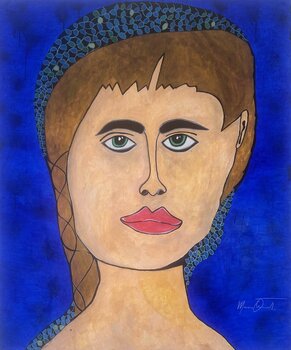 dai colori caldi. L'asimmetria che contraddistingue i volti delle mie donne, i loro sguardi persi nel vuoto e le labbra carnose, fanno di "The Summer Girl" la continuazione del mio viaggio alla ricerca di opere che ritraggano volti di donne emozionate con