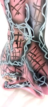 Questa scultura è un’esplosione di energia urbana e futuristica. Ho voluto catturare l’anima inquieta di una metropoli notturna, usando acrilico e plastica per creare contrasti vivi e graffiti evocativi. Il busto, imponente e libero nello spazio, trasmette tensione e vulnerabilità insieme, portando un’energia pulsante che trasforma… ogni ambiente in un vibrante riflesso della cultura contemporanea.