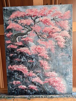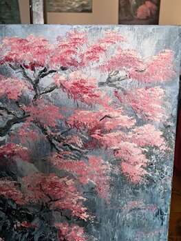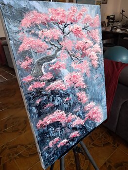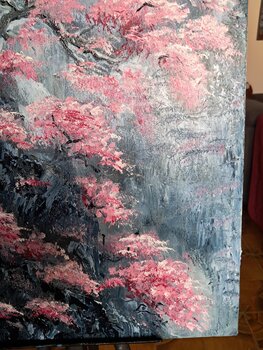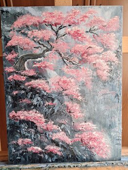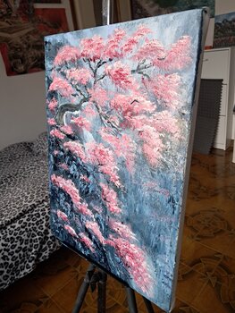 Per me, questa tela rappresenta la resilienza: la capacità della bellezza di fiorire nonostante le avversità. Utilizzo… il colore a olio con una tecnica fortemente materica; stendo i rosa e i bianchi con pennellate dense, quasi scultoree, per dare ai fiori un corpo fisico che lo spettatore può quasi percepire al tatto. Spero che chi osserva questo quadro possa sentire la stessa energia vibrante e la stessa pace contemplativa che provo io di fronte allo spettacolo della rinascita primaverile."
