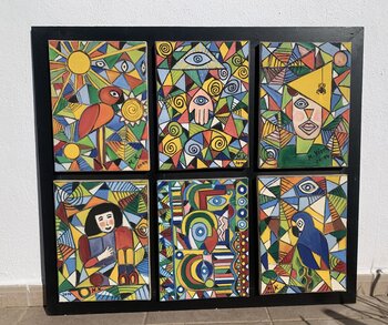 In questo lavoro ho utilizzato colori acrilici per creare una composizione vibrante, astratta e cubista che combina colori vibranti ed elementi simbolici. Ogni segmento rappresenta un'energia unica, dall'aura misteriosa dei personaggi ai modelli dinamici che simboleggiano la vivacità e la complessità della vita. Questo dipinto aggiunge un'energia speciale a qualsiasi stanza in cui entra, guidato dalle potenti correnti e dalle combinazioni di colori… vivaci.