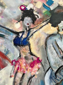 Marie Manon Corbeil iniziò a dipingere tra le sfide personali: "Tra tristezza e speranza, c'era l'arte". Rendendosi conto che le difficoltà della vita le hanno fornito un nuovo mezzo espressivo, Corbeil vuole trasmettere un senso di gioia all'interno delle sue opere astratte contemporanee. Disegna forme e scrive parole positive sotto ogni tela prima di iniziare un pezzo. Impiegando grandi pennelli per provocare tratti non pianificati, usa anche le dita per ottimizzare i colori vibranti delle sue composizioni.