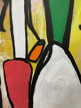 "Walking Through a Rainbow" è un pezzo figurativo astratto con un pizzico di Pop-Art che suggerisce in modo umoristico cosa potrebbe accadere se dovessi camminare attraverso un arcobaleno. Le figure colorate del dipinto sono raffigurate senza tratti del viso, come se fossero state trasformate dalla magia dell'arcobaleno. L'uso di colori vivaci e audaci aggiunge un tocco giocoso al pezzo, rendendolo un'opera d'arte divertente e spensierata. Misura… a 42 x 58 pollici, è un dipinto grande e impressionante che porterà sicuramente un sorriso sul volto di chiunque.