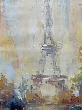 Abstract oil painting ‘Autumn . Umbrellas. Sunny day