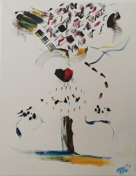 Nel mio quadro, ho usato pastelli per creare una composizione d astrattismo simbolico, dove colori e forme si mescolano in un dinamico vortice di emozioni volti alla comprensione dell esperienza terrena ed al suo senso d amare dove regna distruzione e morte. Una fusione di nero, blu, e accenti di rosso che rappresenta le relazioni con gli altri esseri umani, che fluttuano sui resti arborei e le tragiche sfide dell'amore terreno. Alla base del dipinto,… una scia di giallo che costeggia il blue chiaro genera un impronta energetica da cui linfa vitale. Quest'opera progredisce nelle profondità remote di ogni spazio emotivo, invitando l'osservatore a riflettere sulla propria esperienza umana affettiva e amorosa.