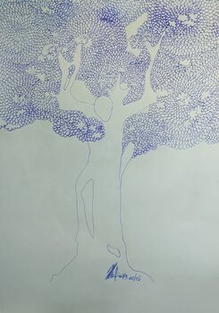Ho realizzato questo disegno con la penna per catturare la fusione tra l’uomo e la natura in modo delicato e poetico. La figura che si confonde con l’albero rappresenta la nostra unione profonda con l’ambiente, un abbraccio silenzioso che trasmette serenità e forza. Questa opera porta energia calma e riflessiva, perfetta per infondere quiete in qualsiasi spazio.