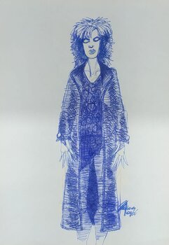 Questa creazione nasce dalla voglia di esplorare l’intensità di uno sguardo e l’energia misteriosa di un personaggio enigmistico. Ho usato la penna per tratteggiare emozioni nascoste, ogni linea racconta un frammento di storia. Il disegno porta con sé una vibrazione intensa, capace di trasformare qualsiasi spazio in un luogo di curiosità e fascino oscuro.