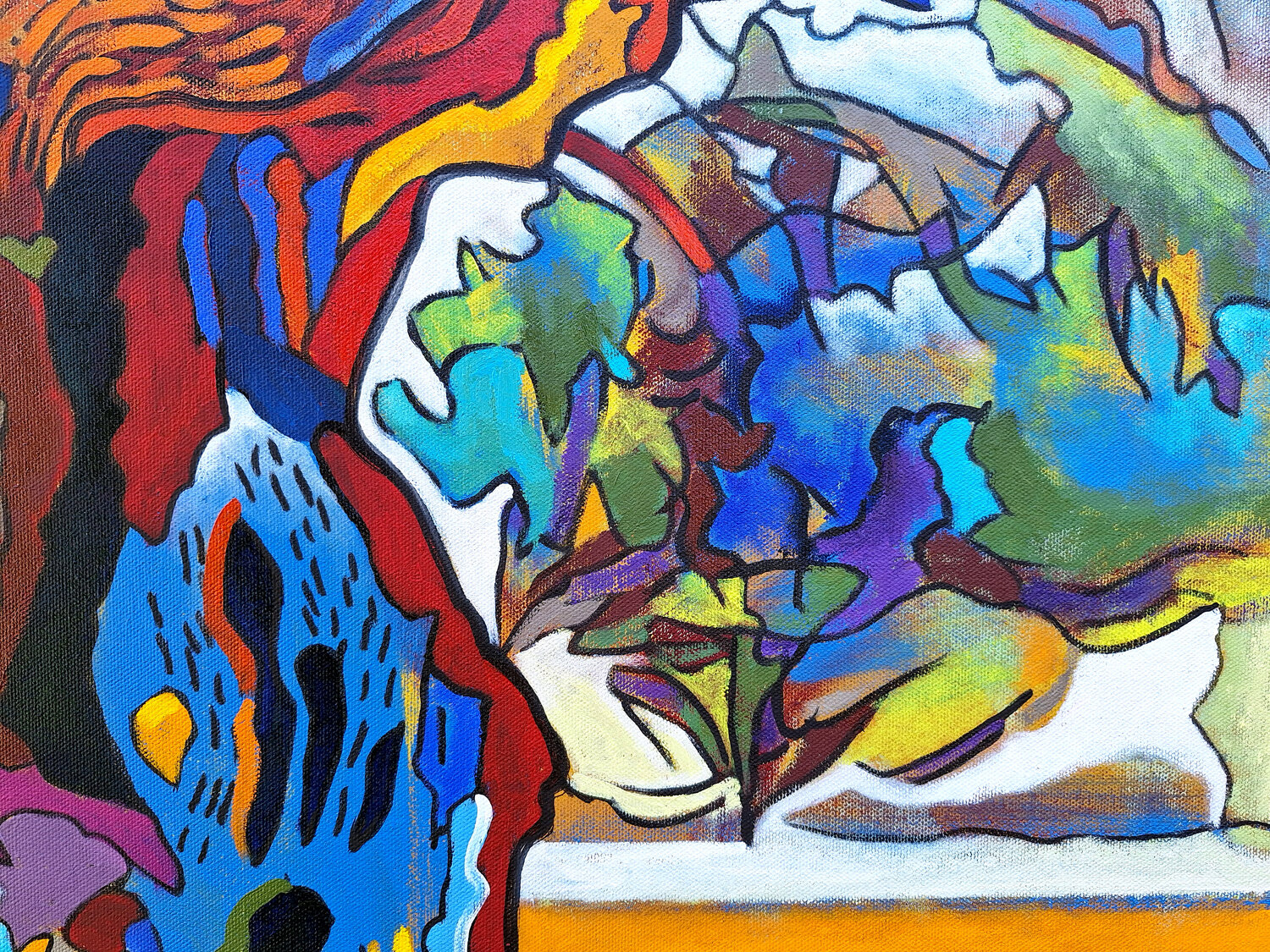 Paesaggio dell'anima. Nel suo tronco antico, i colori vibranti e fluenti