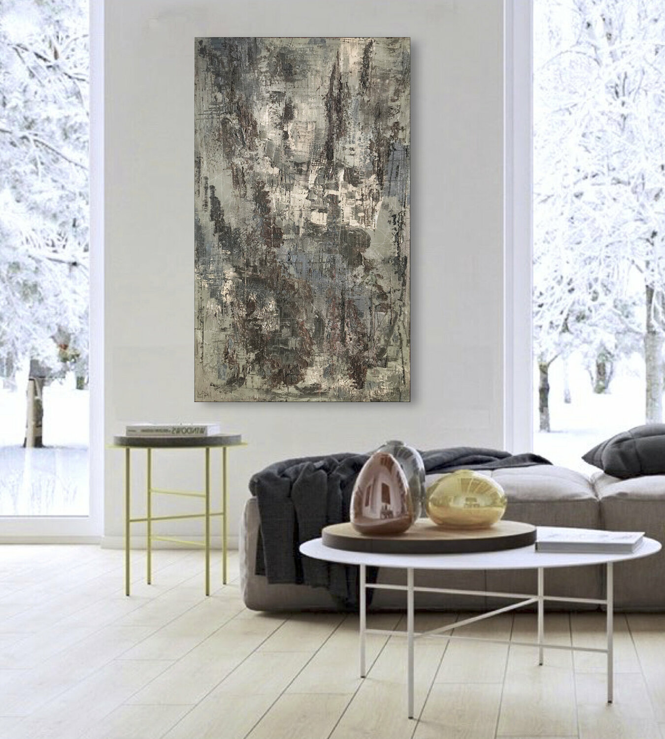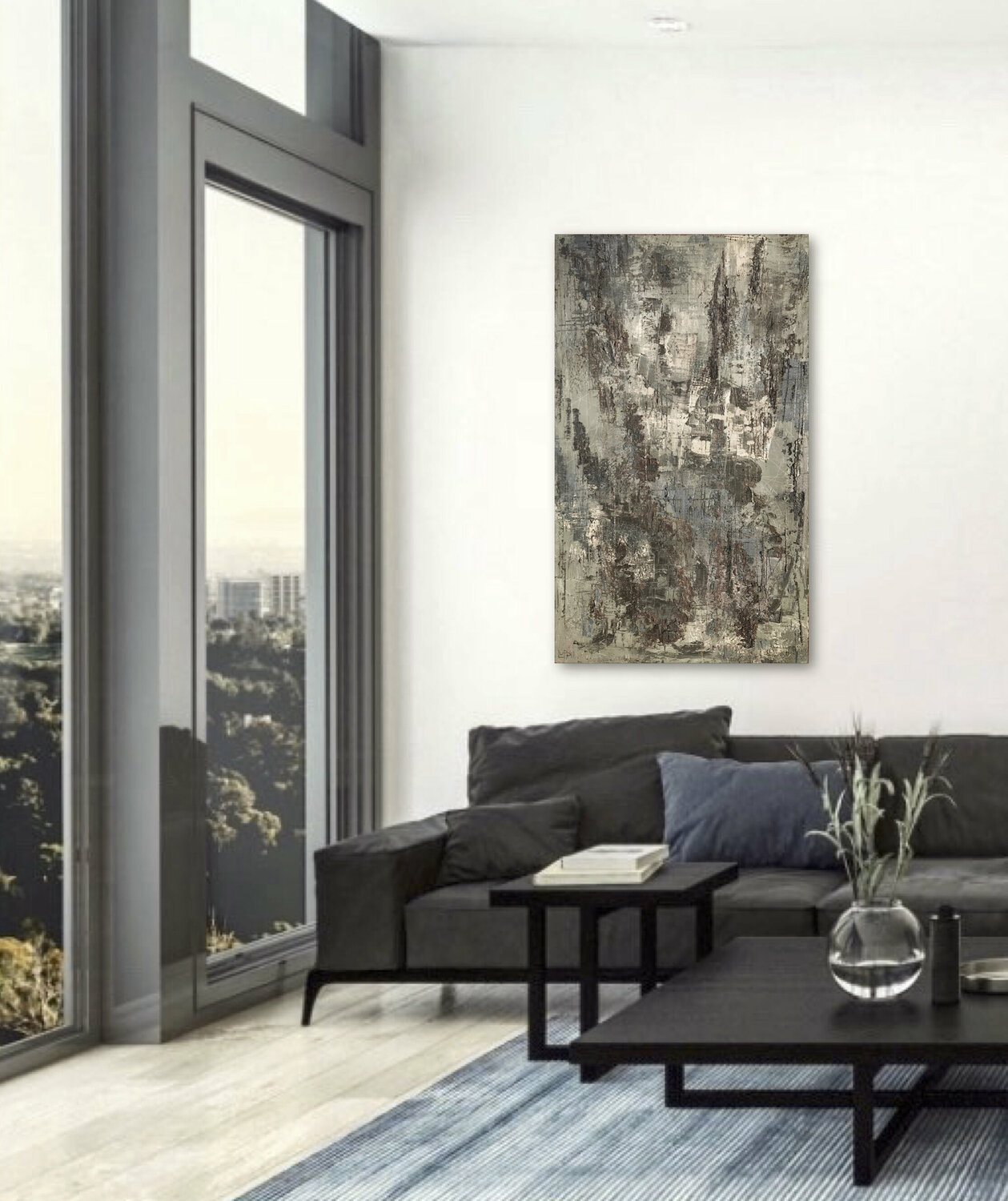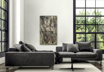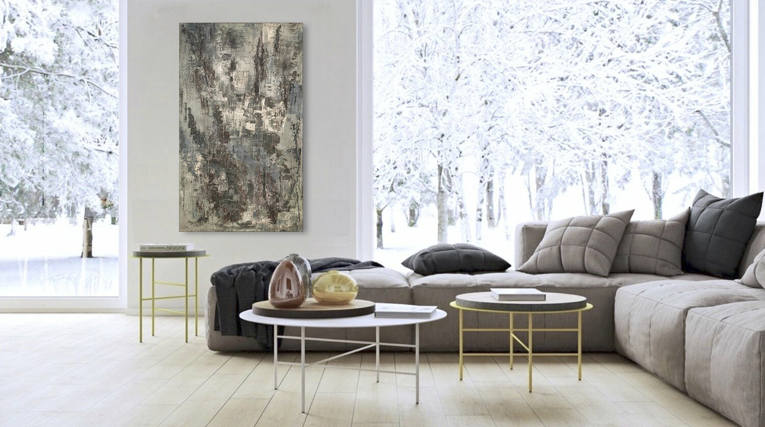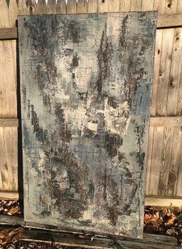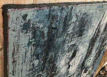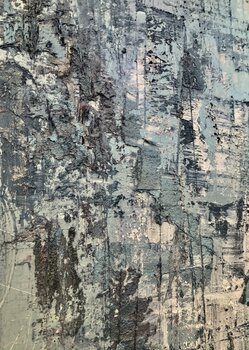 Olio denso con applicazione spatola su tela, teso su telaio in legno, cablato e pronto da appendere.