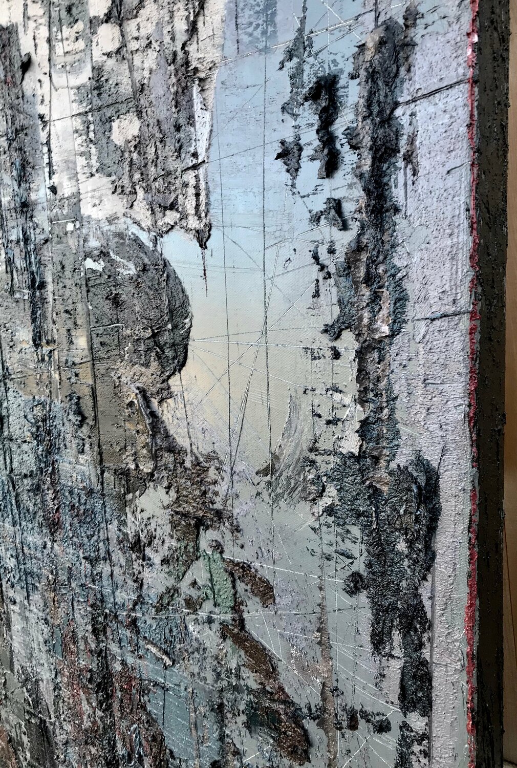 Questo dipinto rappresenta una veduta aerea dell'inconscio, che mostra un riflesso del passato e del presente. Lavoro principalmente dal sorgere di sentimenti inconsci dal profondo del nostro abisso interiore. Quei sentimenti vengono in una varietà di modi e anche affiorano in superficie e incontrano la realtà della nostra esistenza quotidiana.
