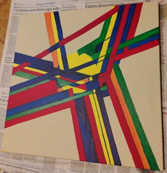 Ho sentito l esigenza di usare il compasso delle mie medie , era da tanto che ci giravo attorno, poi ciò colorato dentro di giallo e sono uscite delle linee prima gialle poi tosse e infine blu, poi l ho guardato da lontano una volta finito e mi è venuto in mente Kandinsky , con le sue linee e cerchi colorati e così che mi sono letta una sua opera fino alla sera, grazie dell' ascolto.