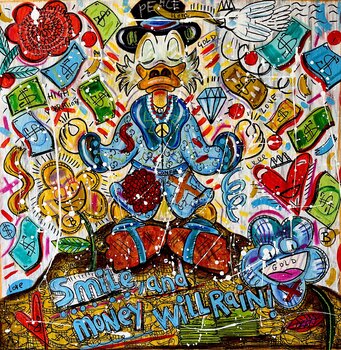 In quest'opera ho fuso l'energia vibrante dei graffiti e dell'acrilico per catturare l'essenza della pop art e dei fumetti. La mia ispirazione è il dualismo tra cultura consumistica e ricerca personale della felicità. I colori vivaci e le icone culturali riflesse invitano alla riflessione sul materiale e sullo spirituale con un tono giocoso e satirico. Questo pezzo emana un'energia audace che saprà sicuramente ravvivare qualsiasi spazio, aggiungendo… un tocco di riflessione e tanto colore.