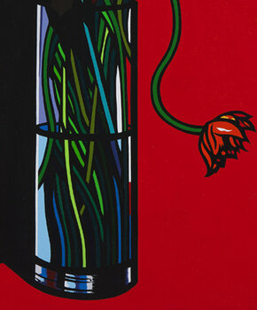 La vita e l'ombra della città sono rappresentate da fiori colorati e ombre,