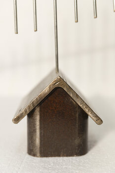Ho creato questa scultura in acciaio per tracciare un parallelo tra la sfida della protezione della natura e la valanga di cattive notizie che segna il declino della tutela ambientale. Il pesce, rappresentato nella sua forma più semplice, imita la posizione dell'antenna sul tetto di casa... Il pesce "antenna" può essere orientato a 360°.