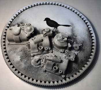 Nascono così piccoli frammenti di paesaggio dentro altri frammenti o fossili di origine umana e meccanica, micro luoghi immaginari in cui detriti senza… vita diventano ipotetici nidi (inospitali ed inabitabili) essenziali per la sopravvivenza e per la ricostruzione.