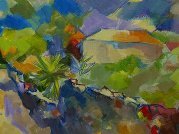 La foto è stata scattata en plein air sull'isola di La Palma delle Canarie e mostra il villaggio di Todoque a picco sul mare. È dipinto su tela con un pennello. Anche i lati sono dipinti e quindi danno un aspetto vivace e tridimensionale. L'immagine non necessita di cornice ed è pronta per essere appesa.