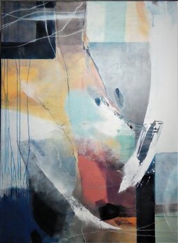 L'immagine combina uno spettro diversificato di colori e forme. I toni profondi del blu scuro e del rosso si alternano ai toni del giallo chiaro e del verde. Al di sopra di questo ci sono aree bianche generosamente curve. La connessione è costituita da strutture lineari fini. Mi sono ispirata alle pietre multicolori del fiume Versasca su cui schizza l'acqua.