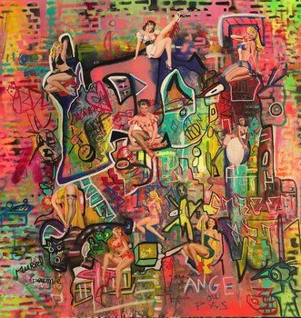 In questo lavoro fondo un'energia vivace con collage audaci e schizzi di vernice spray. Ispirato alla pop art, ogni elemento esprime gioia abbagliante e libertà di spirito. Colori vibranti e motivi ritmici invitano a celebrare la diversità e la bellezza dell'espressione individuale. È una celebrazione della vita, catturata nel movimento e nel colore, perfetta per energizzare qualsiasi spazio con il suo spirito radioso.
