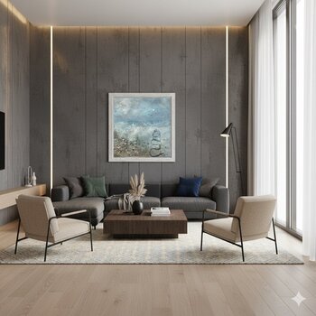 La materia pittorica, a volte densa, a volte leggera, ci invita a contemplare questo dialogo tra solidità e fluidità, tra peso e leggerezza.