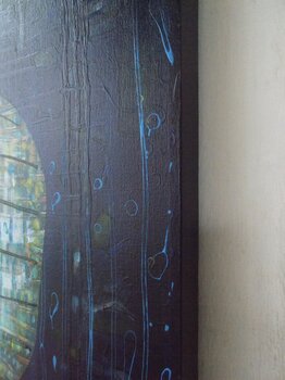 In questo pezzo, mi sono meravigliato del contrasto tra scala e dualità, mescolando acrilico, spray e inchiostro per evocare un arazzo di luce e ombra. L'ispirazione orientale incontra l'espressione semi-astratta, con strati simbolici che invitano alla riflessione. Questi fari luminosi pulsano di vita, una danza del vibrante e del sottile, infondendo nel tuo spazio un equilibrio cosmico di tranquillità e vitalità.