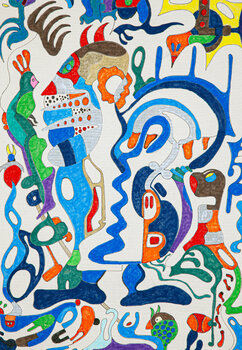 Questo dipinto stravagante, realizzato con pennarelli a olio su tela, ci trasporta in un regno fantastico dove gli uccelli sono scherzosamente dotati di aspirapolvere. Un cenno spensierato alle mie ricorrenti disgrazie con gli aspirapolvere, quest'opera d'arte incarna in modo astratto e umoristico le mie lotte, trasformandole in una deliziosa narrazione visiva.