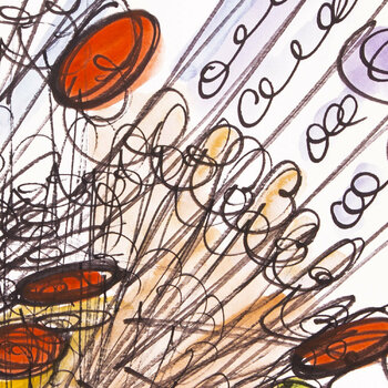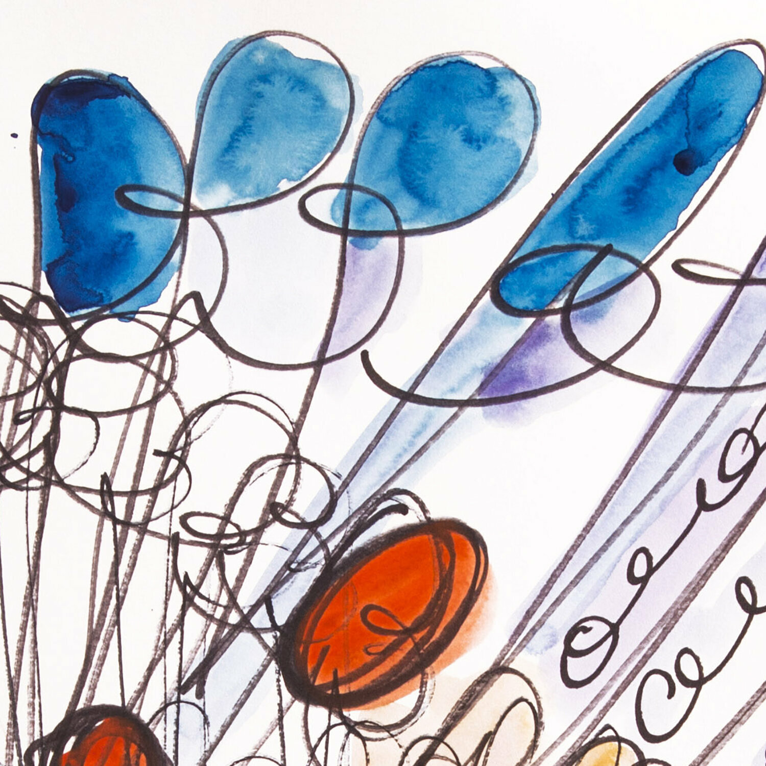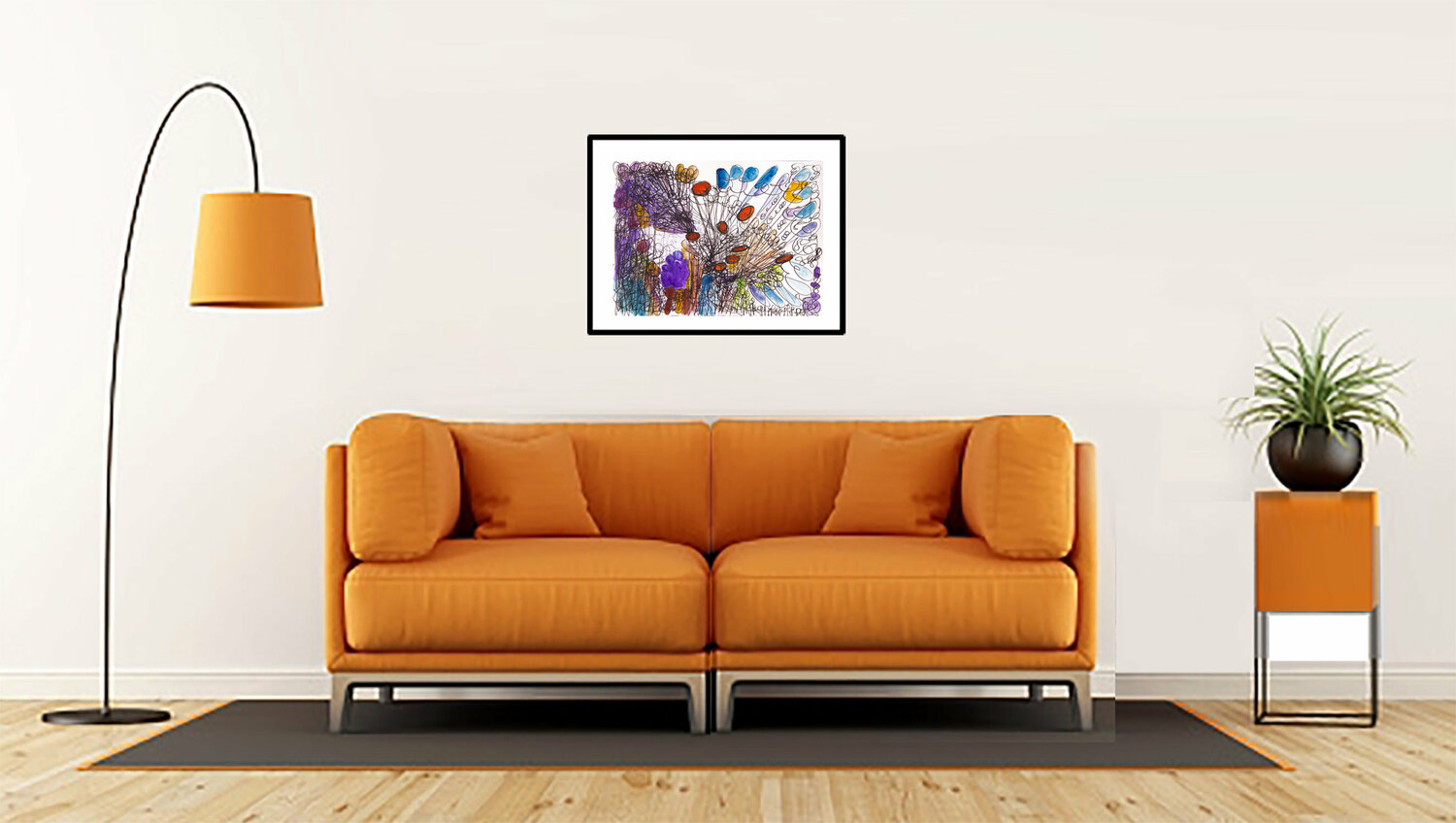 Quest'opera d'arte prende vita attraverso una fusione di pennarelli a olio, acquerelli e acrilici su carta. La composizione emana un calore accogliente, punteggiato da un caleidoscopio di palloncini colorati e vorticosi filamenti neri. Al centro della scena, una famiglia è raffigurata nei toni del viola, irradiando un senso di unità. Tre figure si avvicinano, assorbite dai suoni eterei di un paese fatato musicale dove l'armoniosa interazione tra… amore e musica è al centro della scena. Questo dipinto deve essere incorniciato.