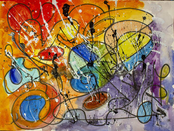 In questo lavoro ho cercato di fondere vigore e morbidezza, utilizzando acrilico e acquerello con tocchi di feltro. Forme astratte e schizzi dinamici simboleggiano il movimento incessante della vita, una coreografia colorata che danza sulla carta. Ogni colore vibra, portando energia ed emozione. Trasmetterà gioia vibrante e ispirazione costante in ogni spazio in cui abita.