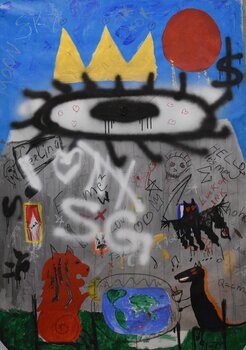 "In the Middle Of..." nasce da una sensazione di sospensione, tra chiarezza e rumore, amore e conflitto. Ispirato dall'energia grezza e dall'onestà intrepida di Jean-Michel Basquiat, ho usato parole, simboli e caos per parlare prima che tutto svanisca.