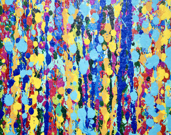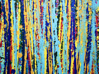 I colori vanno da molte sfumature di blu, verde, verde chiaro, verde acqua, arancio, giallo, viola, rosso, giallo ocra, ogni colore mescolato con un mezzo illuminante.