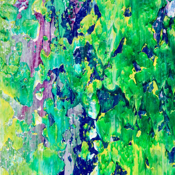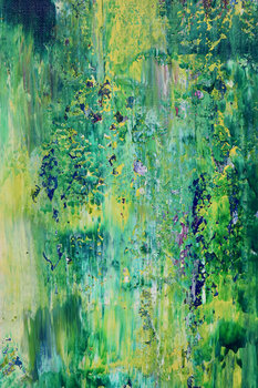 Astratto con colori vivaci ispirati alla natura, sfumature di verde e giallo pallido con finitura semilucida iridescente. Creato con coltelli da tavolozza e strati di vernice fine. Firmato davanti.
