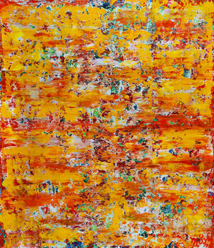 Natura ispirata agli infiniti colori del tramonto della California: si tratta di un estratto colorato strutturato, un sacco di sfumature di giallo, arancione, verde e verde cangiante, bianco e blu. Firmato sul davanti. Questo lavoro vibrante e colorato è una celebrazione del sole!