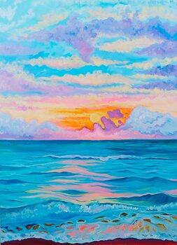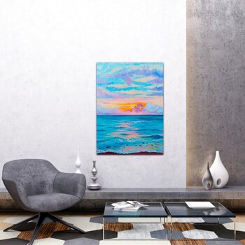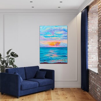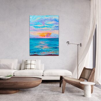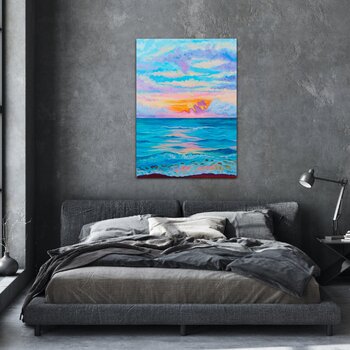 Nel realizzare questo pezzo, ho riversato la mia anima nel catturare il vibrante scontro tra la quieta serenità dell'alba e l'energia dinamica dell'oceano. Le tonalità vivaci parlano dei momenti maestosi dell'alba, un momento di speranza e di nuovi inizi. È un invito a immergersi nella tranquillità, favorendo allo stesso tempo uno spazio di ispirazione e ringiovanimento nella tua casa.