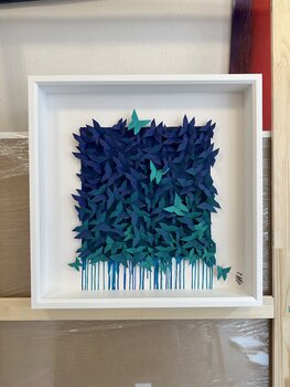Un appassionato d'arte, acquisto effettuato nel mese di dicembre 2023: "Les oiseaux bleus... (ORIGAMI 2022)", Acrilico, Collage su Cartone , 10,6x10,6in