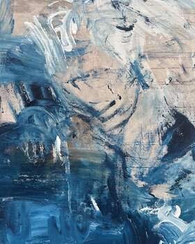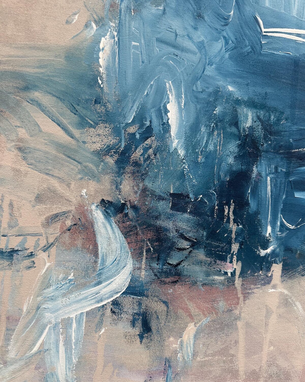 In quest'opera, ho riversato emozioni pure e crude attraverso pennellate selvagge e ampie di blu e bianco su uno sfondo tenue. La texture e il movimento dell'acrilico esprimono un potente cambiamento, come liberarsi dal passato e abbracciare l'incertezza. Infonde un'energia dinamica in qualsiasi spazio, invitando a percepire la tensione e la promessa di una trasformazione allo stesso tempo.