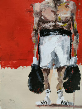 Boxer di cartoni animati ritratto (personaggio originale proprio, creato da me). Acrilico e gesso su carta "Fabriano" 300 gr. Utilizzo materiali e mezzi di altissima qualità, resistenti alla luce e al passare del tempo.