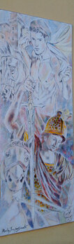 Disegno ispirato a Sigfrido (Siegfried), il terzo dramma musicale della tetralogia "L'anello del Nibelungo" del compositore tedesco Richard Wagner (Lipsia 1813 – Venezia 1883), opera teatrale rappresentata per la prima volta il 16 agosto 1876 al Festspielhaus di Bayreuth. Sigfrido, l'eroe per eccellenza della mitologia germanica, era forte, coraggioso, di bellissimo aspetto ed armato di una magica spada con cui affrontò il drago e lo uccise, per… poi si bagnarsi nel suo sangue per diventare invulnerabile. Ho creato quest'opera con passione, unendo matite, inchiostro e pastelli per evocare forti emozioni. L'arte espressionista si fonde con il realismo, catturando la lotta umana, il coraggio e la nobiltà. Ogni tratto riflette l'intensità dei sentimenti e la determinazione dei soggetti, portando energia e ispirazione in ogni spazio che ospiterà quest'opera.