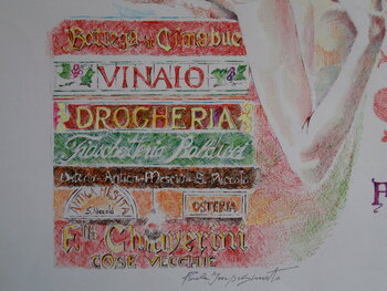 Opera d'arte in cui si valorizzano altre bellezze della città di Firenze, che risiedono in antiche tradizioni del vivere quotidiano: l'osteria e la bottega come luoghi di ritrovo della gente comune. La giovane donna sovrasta l'insieme dei simboli e pare immergersi nel loro fascino in affinità con il Giglio, emblema per eccellenza della città. Ho canalizzato ricordi e nostalgia in quest'opera, catturando lo spirito vintage attraverso l'inchiostro… di china. È un tributo all’espressionismo e al realismo, incarnando il fascino figurativo e l'aura delle vecchie insegne, infondendo un'energia emotiva, evocando i sensi e risvegliando i ricordi. Questa creazione arricchirà la vostra casa con un tocco di eleganza storica e profonda risonanza personale.