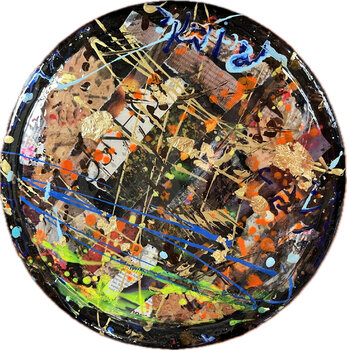 Texture accattivanti, vivide e scintillanti dorature raccontano storie di caos controllato e bellezza urbana. Utilizzando acrilico, collage, foglia d'oro in resina, ogni elemento danza vibrantemente sotto le luci, catturando l'essenza della pop art in una celebrazione dinamica di colori e forme. Questo lavoro conferirà un'energia audace e un tocco moderno a ogni spazio, invitando alla convivialità e alla riflessione.