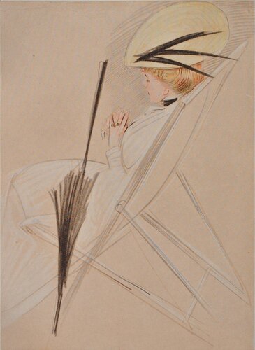 Paul César Helleu lavorava con oli, pastelli e acquaforte a puntasecca, traendo ispirazione dal suo background negli eleganti circoli della Belle Époque. Lei impiegava linee fluide ed espressive e una luminosa gestione della luce, catturando la grazia e la raffinatezza fugaci delle donne dell'alta società. La sua arte irradia sofisticatezza e malinconica nostalgia, invitando gli spettatori in un'epoca d'oro da sogno.