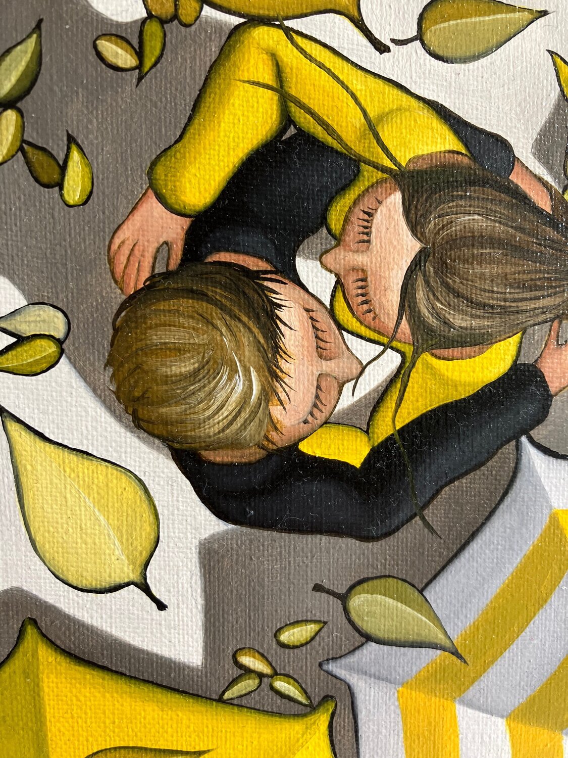 Il dipinto ad olio di Perrine Vilmot è un invito a vagare perché consiste in visite colorate e gentili a varie situazioni. Senza alcuna volgarità, Perrine rivolge il suo sguardo attento al mondo circostante. Siamo profondamente coinvolti nella sua visione pura, sensibile e autentica. I suoi dipinti sono momenti calmi, poetici e fluidi che portano con sé la forza della vita quotidiana o la sorpresa di… situazioni insolite. Attraverso le sue “viste dall'alto”, l'artista guarda, esamina, cerca per svelare ciò che è ineffabile. Rimaniamo sorpresi, commossi, sconvolti da questi tuffi in scene quotidiane o eccezionali che risuonano nell'anima. In mezzo alla folla c’è l’individuo, l’oltreoceano, l’eccezionale e l’unico. Nelle sue opere l'artista porta sul palco una coppia, un essere, e ne sostiene la presenza per renderla più intensa.
