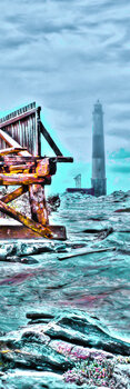Una stretta passerella attraversa acque calme e conduce a un piccolo faro. La linea netta del sentiero struttura lo spazio aperto e dirige lo sguardo verso l'unico elemento verticale della scena. Acqua, orizzonte e cielo formano una composizione minimalista in cui orientamento e vastità diventano tangibili.