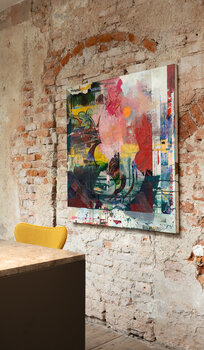 Titolo dell'opera: Ritaglio di giornale Picasso. Questa è una presentazione dei dipinti nello showroom del marchio di design danese »Fritz Hansen«. I loro classici del design minimale e i dipinti esuberanti di Peter Vahlefeld si scontrano ma allo stesso tempo sembrano complementari: la loro gamma di colori riservati (come la pittura Color Field) rispetto alle esplosioni cromatiche di Vahlefeld (Espressionismo astratto). Il dipinto sa di essere un… palcoscenico e che la performance è il suo potere più alto. Non c'è modo qui di distinguere l'attore dal ruolo, la performance dalla sua immagine. Le opere d'arte sono radicate nelle loro ricche pennellate, mentre sottili elementi di testo suggeriscono narrazioni inaspettate che si nascondono sotto.