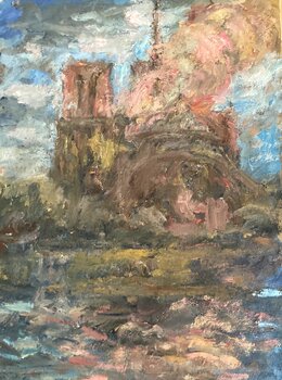 Volevo catturare la potenza pura e l'intensa emozione dell'incendio che ha avvolto la Cattedrale di Notre-Dame a Parigi, questo monumento iconico. Attraverso pennellate dense e colori vivaci, esprimo fragilità e resilienza. Questa tela, che fonde astrazione e figurazione, trasmette un'energia toccante che darà energia al vostro spazio con forza poetica e un commovente omaggio.