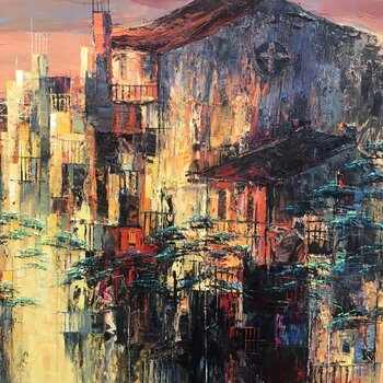 Quan Le è un artista con sede in Vietnam i cui dipinti sono stati esposti a livello nazionale. Attualmente vive e lavora ad Hanoi. Per quasi diciotto anni di pittura ad olio, dipinge ciò che il suo cuore può sentire, non ciò che gli occhi possono vedere. La maggior parte di loro sono in un eccitante stile impressionista, con una miscela di cubismo, espressionismo e contemporaneo semi-astratto. I temi dei paesaggi, delle architetture e delle aree urbane vengono in una certa misura semplificati, lasciandone la maggior parte alla memoria. Per lui, la pittura è quando riesuma i ricordi caotici e frammentati della sua infanzia povera, aspra e indigente per portare gli spettatori in un altro mondo gioioso, un'isola che non c'è, un ricordo della stagione lontana.