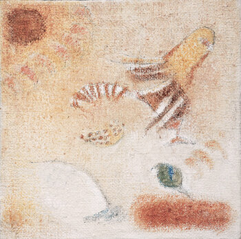 Nella mia opera d'arte, ho esplorato l'etereo e il flusso dell'inconscio, usando pastelli per creare forme astratte e texture sognanti ispirate ai graffiti delle grotte di Lascaux. L'accento sui toni caldi e le sfumature delicate invita chi guarda a riflettere sulla propria interiorità e sulle emozioni più nascoste. È un pezzo che porta energia e profonda risonanza emotiva in ogni ambiente, stimolando un dialogo continuo con l'essenza più intima… dell'osservatore.
